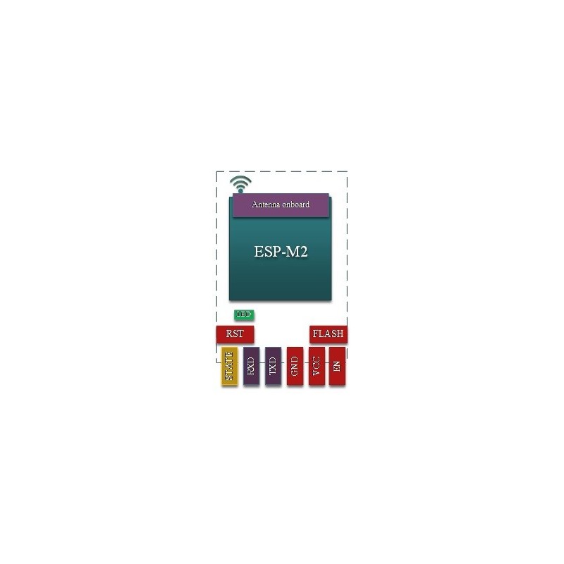 Built-in the high-performance WiFi module ESP-M2 with size: 34mm*17mm*4mm