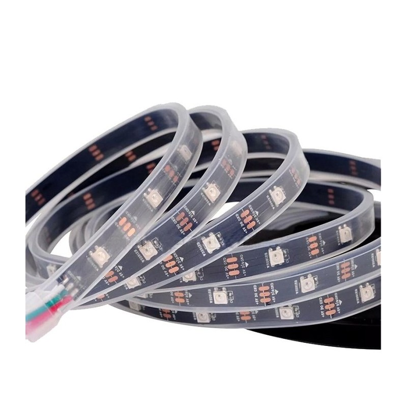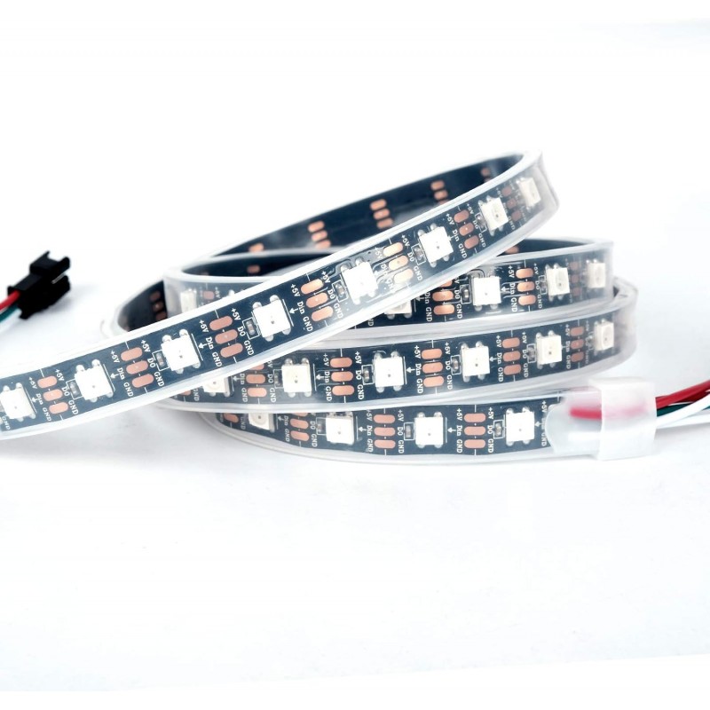 Maksimalaus tankumo spalvotų LED lipni juosta, kuris gali būti sujungiama su tokiais pat moduliais į bendrą 3 laidų magistralę, kurioje kiekvienas LED įjungiamas/išjungiamas ir keičiama jo spalva per duomenų liniją. Sąsajai su WS2812 rekomenduojama naudoti tam skirtus valdiklius, Arduino ar WLED32