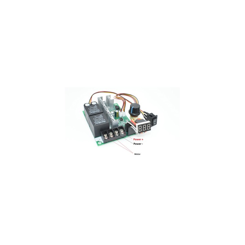 Šis reguliuojamos skverbties (impulso trukmės 0-100%) stačiakampių impulsų (PWM) generatorius puikiai tinka ne tik įvairiems Arduino projektams, tačiau ir paprastam variklių ar kitų analoginių įtaisų valdymui. Per integruotas reles, gali būti sukeičiamas + ir -, kad variklis suktųsi į kitą pusę.