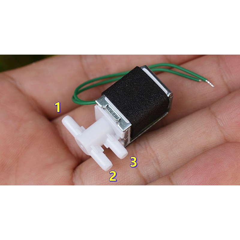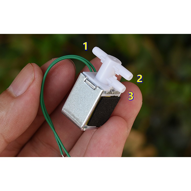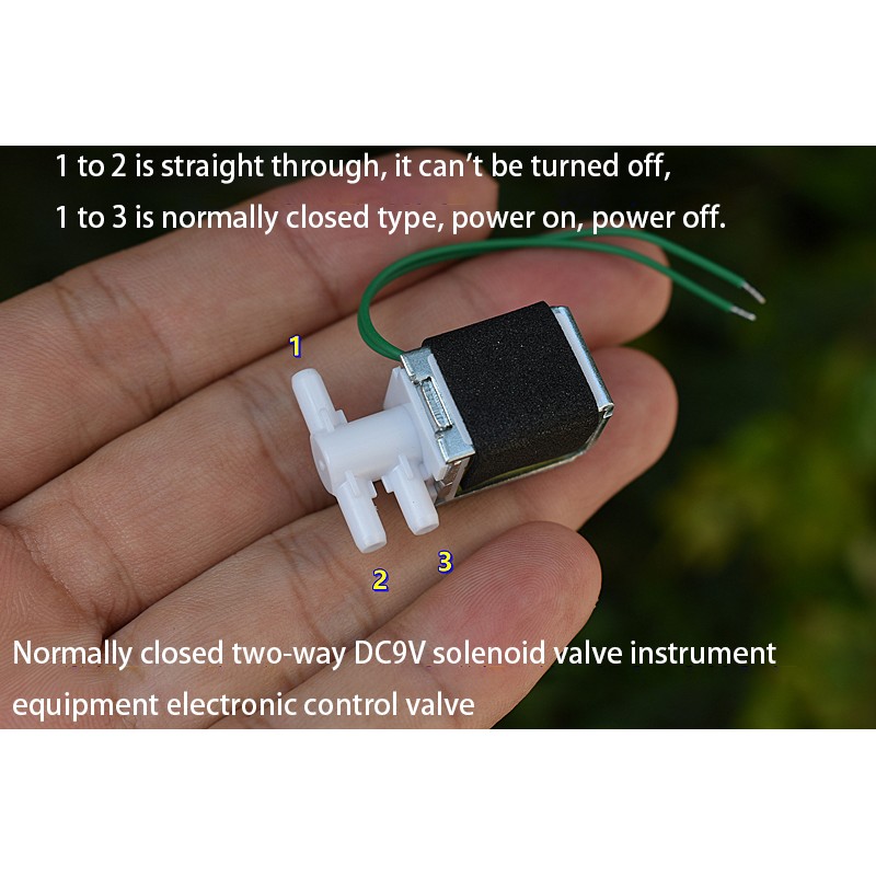Elektromagnetinis vožtuvas 9-12VDC. Normaliai uždara (užsidaro suaktyvinus elektromagneto apviją) atšaka. Žarnelės išėjimai: 3,4mm išorė, 2mm vidus.