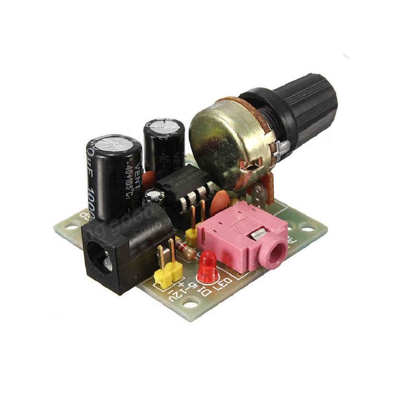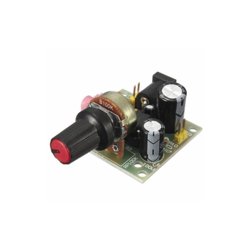 Kai turimas silpnas audio signalas, o norima prijungti galingesnį garsiakalbį, reikia audio stiprintuvo. Šis populiaraus integruoto LM386 audio stiprintuvo pagrindu suprojektuotas modulis tai ir leis padaryti. Potenciometras leidžia keisti garsumo lygį, o 3,5 mm lizdas - prijungti įprastinį audio laidą.